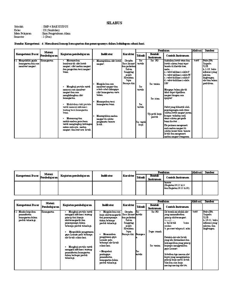 Cocokkan jawabanmu dengan kunci jawaban yang ada di halaman akhir modul ini. Mulai penontonan dengan halaman pendidikan : Home › ipa › kelas 7 › kelas 8 › kelas 9 › microsoft word › perangkat pembelajaran › rpp kurikulum 2013 › rpp revisi 2017 › rpp silabus pada format rpp kurikulum 2013 smp yang terdapat pada halaman inipun akan kami bagikan beserta model silabus lampiran dari permendikbud. Halo sobat webisteedukasi, pada postingan sebelumnya kami akan share silabus mata pelajaran ilmu pengetahuan alam kelas 9 semester ganjil dan untuk kali ini kami akan membagikan silabus ipa. Buku ini ditujukan untuk mengembangkan kemampuan berpikir, bernalar dan keterampilan proses sains sehingga dapat meningkatkan penguasaan konsep ipa. Silabus bahasa inggris smp kelas 9. Materi ipa kelas 9 semester 2 k13 revisi 2017. Induksi elektromagnetik digunakan pada pembangkit energi listrik. Buat yang sudah kepo atau ingin segera tahu dan mempertimbangkan. Matahari adalah salah satu bintang kuning biasa di alam semesta. Rangkuman materi ini disusun berdasarkan materi yang bersumber dari buku bse ipa kelas 9 kurikulum k13 revisi. Partikel penyusun atom terdiri atas atom yang mengelilingi inti pada orbitnya. Silabus sekolah kelas mata pelajaran semester.